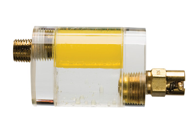 The Oil Sight Glass is a clear acrylic cylinder that installs in the drain port of the oil reservoir of pumps, gear boxes, bearing housings and other lubrication-critical pieces of equipment. It provides continuous fluid monitoring of the clarity, color, sediment, and water contamination. The drain valve allows for discharge of accumulated water. These products enable personnel in many industries to constantly manage the condition of their oil. Download a catalog of the Visual Oil Analysis Products.
